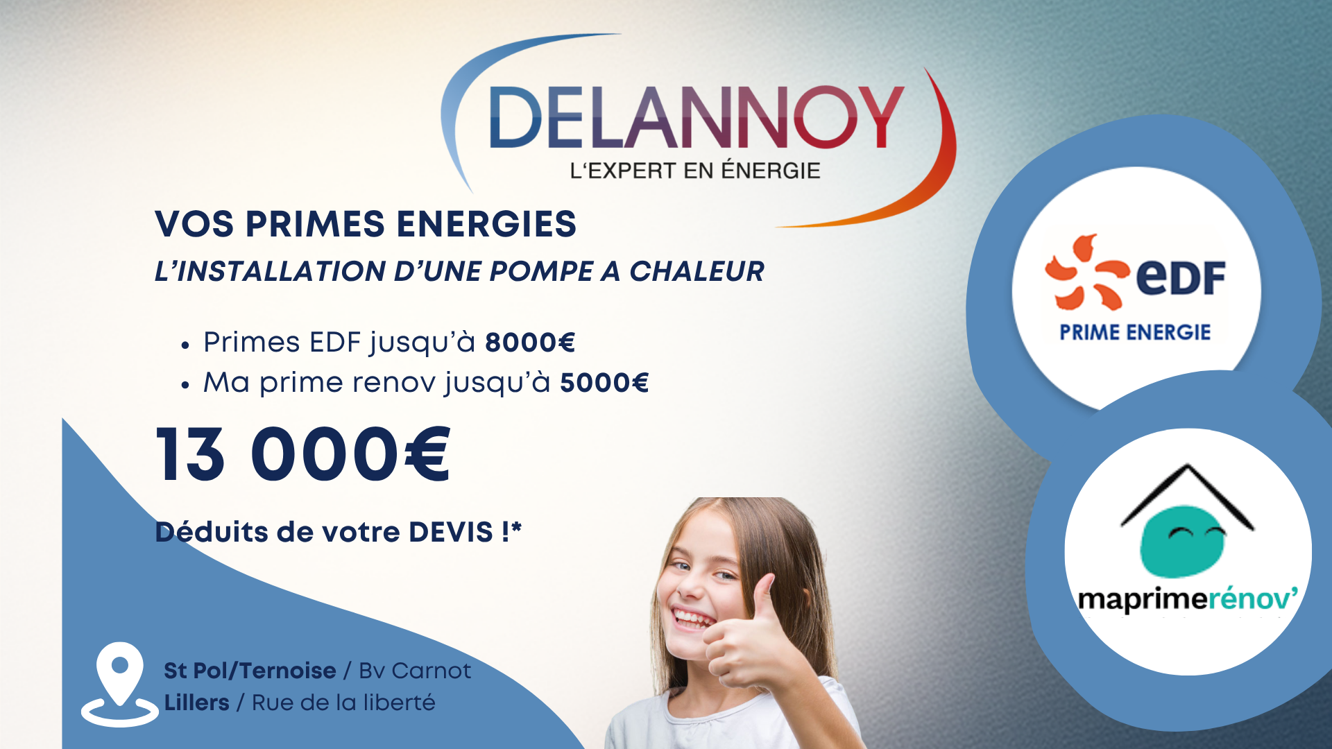 Depuis presque 50 ans, l’entreprise Delannoy met son savoir-faire au service des particuliers, professionnels et administrations de Lillers, Saint-Pol-sur-Ternoise et alentour comme Béthune ou Arras. Spécialistes en génie climatique, nous proposons des solutions thermiques et frigorifiques, en neuf et en rénovation. Du conseil à l’installation, en passant par la maintenance et l’entretien, bénéficiez des compétences de notre entreprise certifiée. Nous sommes Experts Confort Habitat Daikin et partenaires des marques les plus reconnues ; tous nos produits et travaux disposent d’une garantie. Depuis 2023, nous proposons également l'installation de panneaux photovoltaïques.
